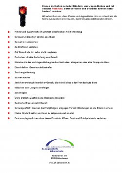 Zum Thema grenzwahrender Umgang im pädagogischen Alltag hat die Ev. Jugendhilfe Schweicheln im Rahmen eines breiten Fortbildungsprojekts unter der Beteiligung von Kindern und Jugendlichen eine „Verhaltensampel“ für Mitarbeitende erstellt.